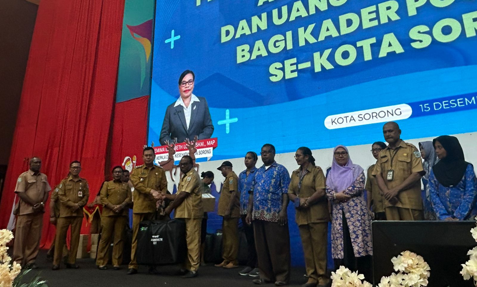 Sorong Today, Sorong – Pemerintah Kota (Pemkot) Sorong menyerahkan Posyandu Prima Antropometri Kit serta uang transportasi bagi kader Posyandu se-Kota Sorong, bertempat di Gedung Lambert Jitmau, Kota Sorong, Papua Barat Daya, Senin (15/12/2025).
