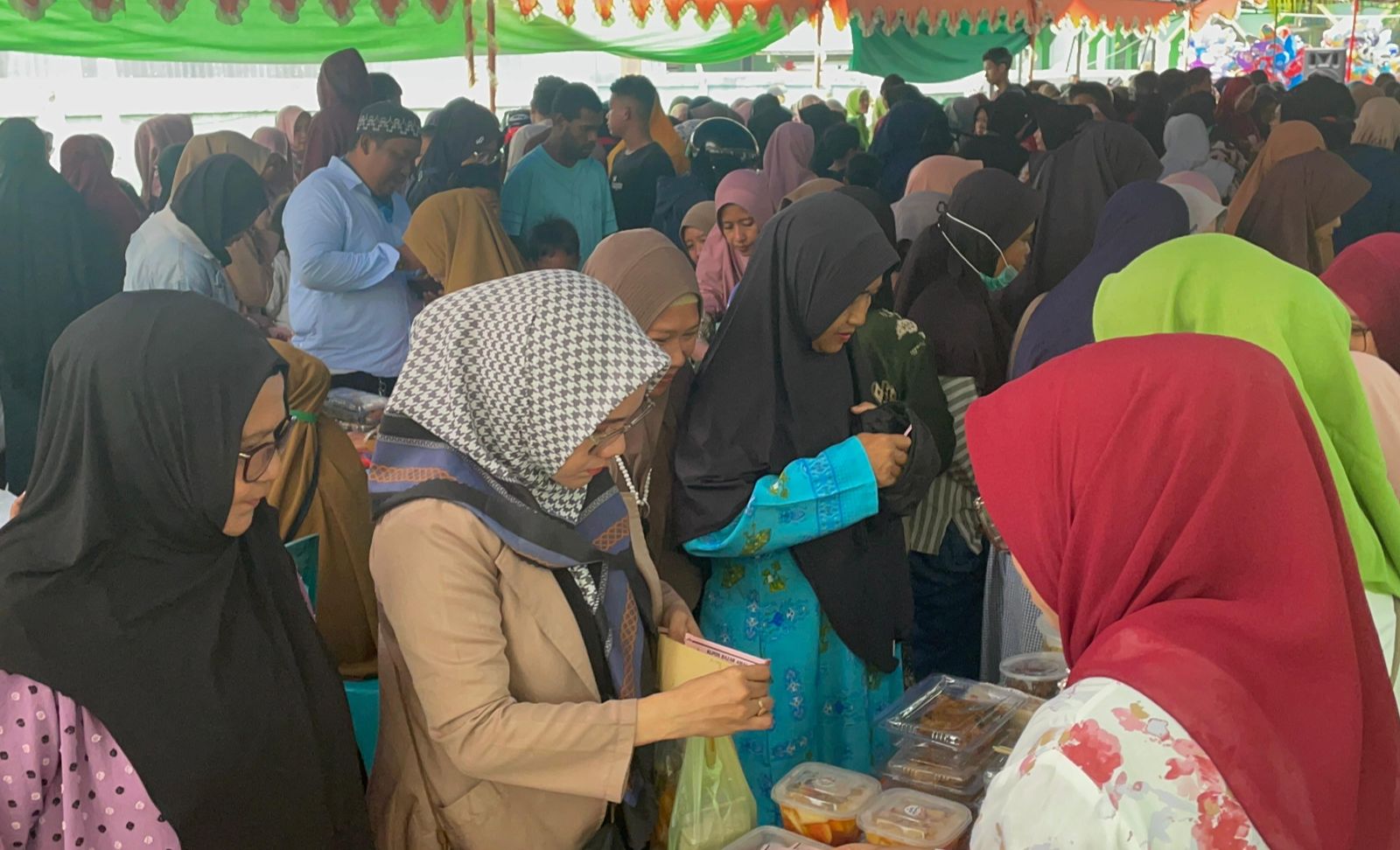 Bazar amal yang dimulai sejak pukul 06.30 WIT tersebut mendapat sambutan antusias dari masyarakat. Ratusan warga, khususnya para ibu-ibu, tampak silih berganti menukarkan kupon dengan berbagai hidangan yang dijajakan. Aneka makanan berat, kue tradisional, minuman, hingga bubur menjadi daya tarik utama kegiatan tersebut.