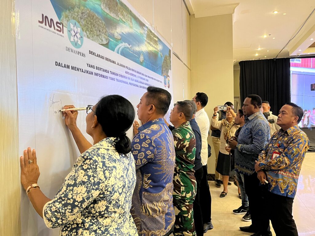 Selain itu, kegiatan turut dikemas dengan penandatanganan Deklarasi Bersama jajaran Polda Papua Barat Daya guna mewujudkan harmonisasi antara Polri dan insan pers dalam menyajikan informasi yang transparan, profesional, dan berkeadilan sesuai kode etik masing-masing profesi.