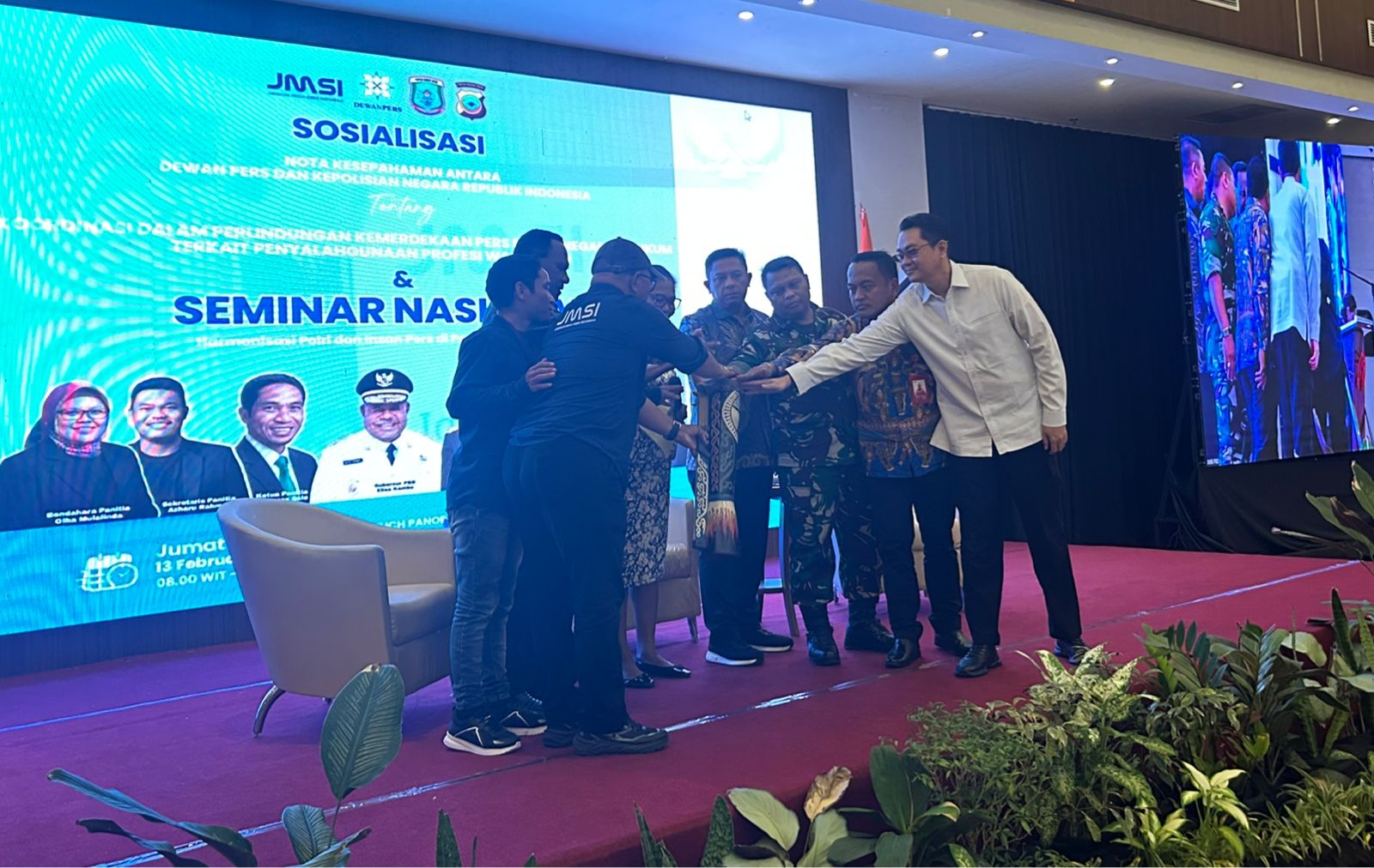 Sorong Today, Sorong – Dalam rangka memperingati Hari Ulang Tahun (HUT) ke-6 Jaringan Media Siber Indonesia (JMSI) pada 8 Februari 2026 dan Hari Pers Nasional (HPN) 9 Februari 2026, Pengurus Daerah JMSI Papua Barat Daya menggelar Seminar Nasional bertema ‘Harmonisasi Polri dan Pers di Papua Barat Daya’ bertempat di Rylich Panorama Hotel, Kota Sorong, Jumat (13/2/2026).