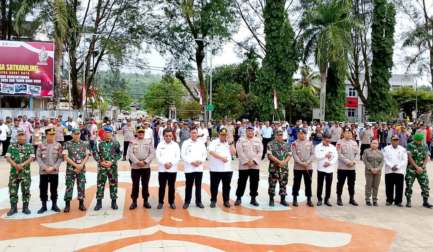 Sorong Today, Sorong – Dalam rangka menjaga keamanan dan ketertiban masyarakat (Harkamtibmas) menjelang Perayaan Natal 2025 dan Tahun Baru 2026, Kepolisian Daerah (Polda) Papua Barat Daya menggelar Apel Siaga Satuan Keamanan Lingkungan (Satkamling).