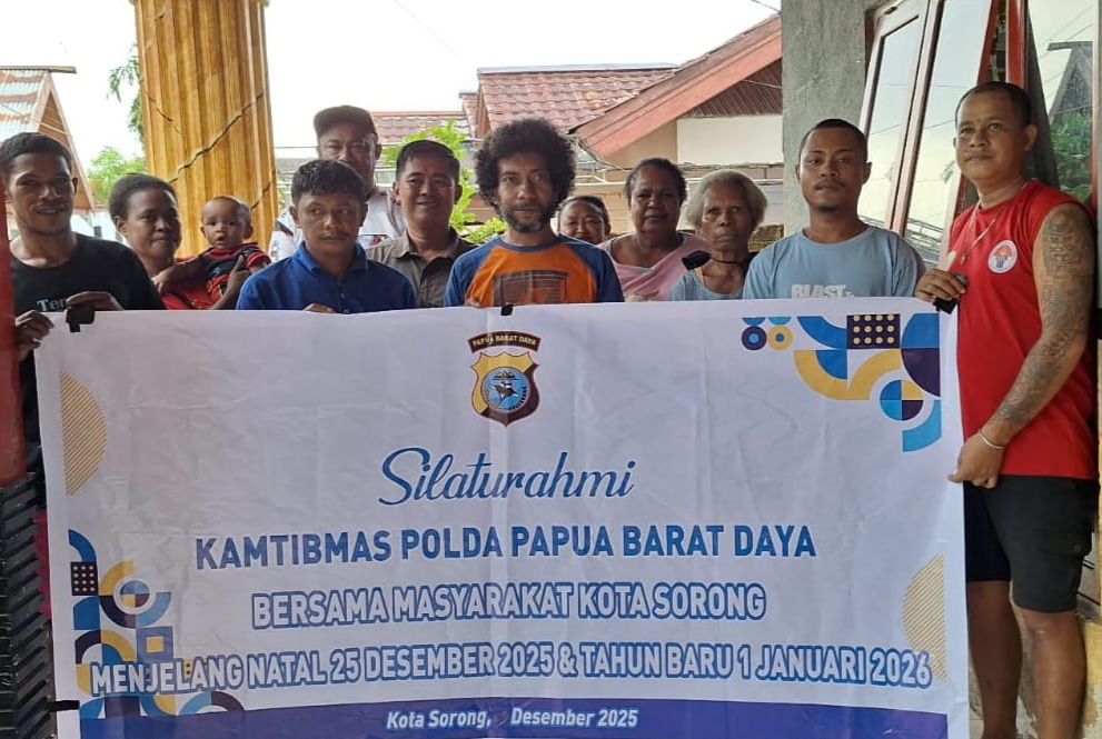 Sorong Today, Sorong – Dalam rangka menciptakan situasi keamanan dan ketertiban masyarakat (kamtibmas) yang aman, damai, dan kondusif menjelang Perayaan Hari Raya Natal 25 Desember 2025 serta menyambut Tahun Baru 2026, Polda Papua Barat Daya terus mengintensifkan kegiatan Silaturahmi Kamtibmas bersama masyarakat.