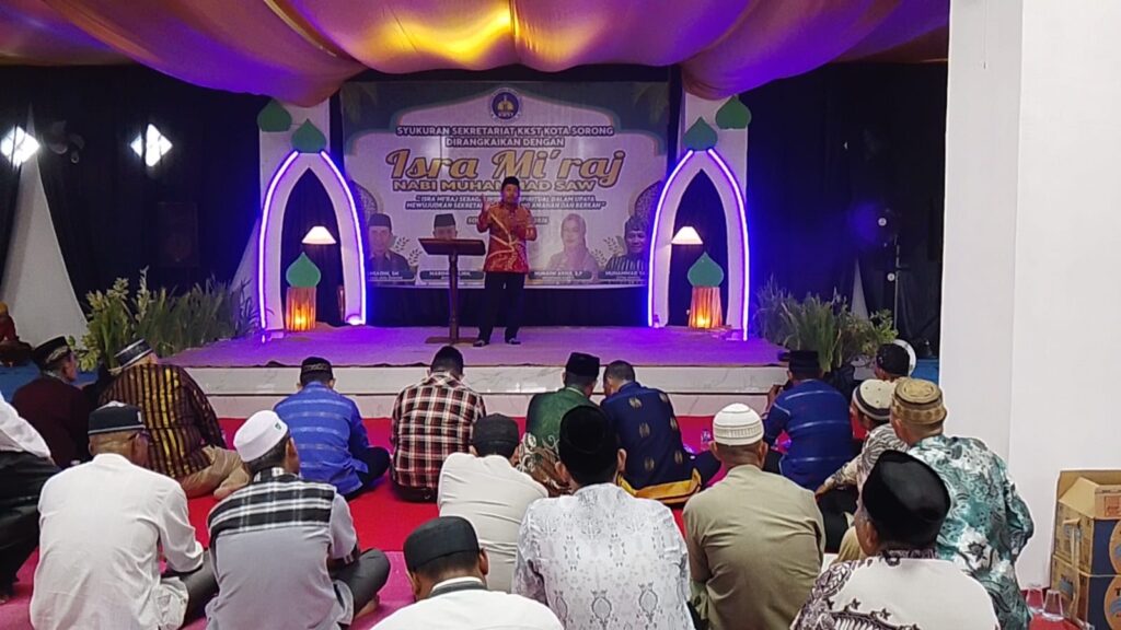 Sorong Today Kerukunan Keluarga Sulawesi Tenggara (KKST) Kota Sorong menggelar syukuran sekretariat yang dirangkaikan dengan peringatan Isra Mi’raj Nabi Muhammad SAW, Minggu (1/2/2026). Kegiatan berlangsung khidmat di Gedung Sekretariat KKST Kota Sorong, Jalan Raya Km 11, Klawuyuk, Kota Sorong, Provinsi Papua Barat Daya.