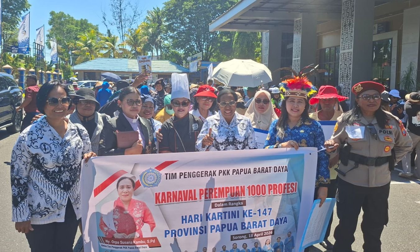 Sorong Today, Sorong – Semangat emansipasi perempuan kembali digaungkan di Kota Sorong melalui Karnaval Perempuan 1000 Profesi yang digelar pada Sabtu (18/4/2026).