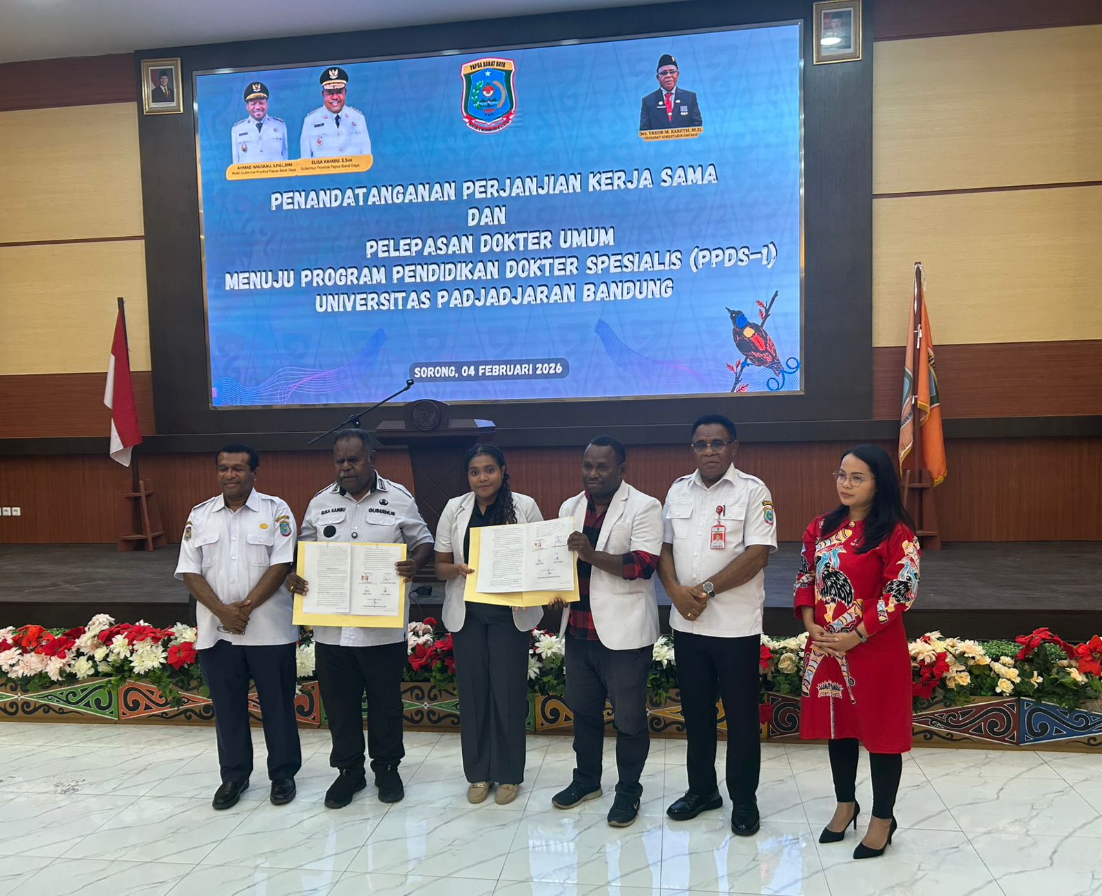 Kegiatan penandatanganan perjanjian kerja sama dan pelepasan dokter tersebut berlangsung di Kantor Gubernur Papua Barat Daya, Kota Sorong, Rabu (4/2/2026) dan dilakukan langsung oleh Gubernur Papua Barat Daya, Elisa Kambu.