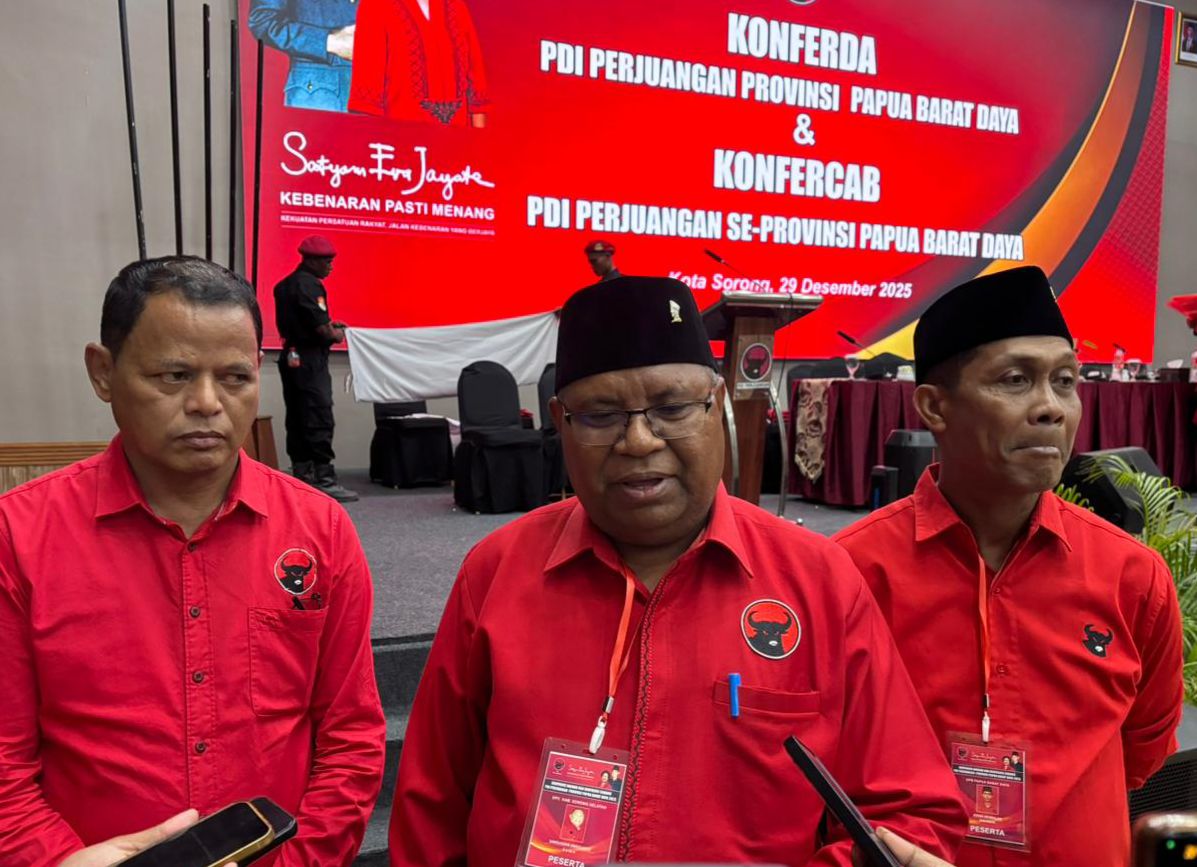 Hal tersebut disampaikan Samsudin Anggiluli didampingi Sekretaris DPD PDI-P PBD Jonas Kelwulan serta Bendahara DPD PDI-P PBD Fredrik F.A. Marlisa usai pelaksanaan Konferensi Daerah (Konferda) PDI Perjuangan Provinsi Papua Barat Daya bertempat di salah satu hotel di Kota Sorong, Senin (29/12/2025).