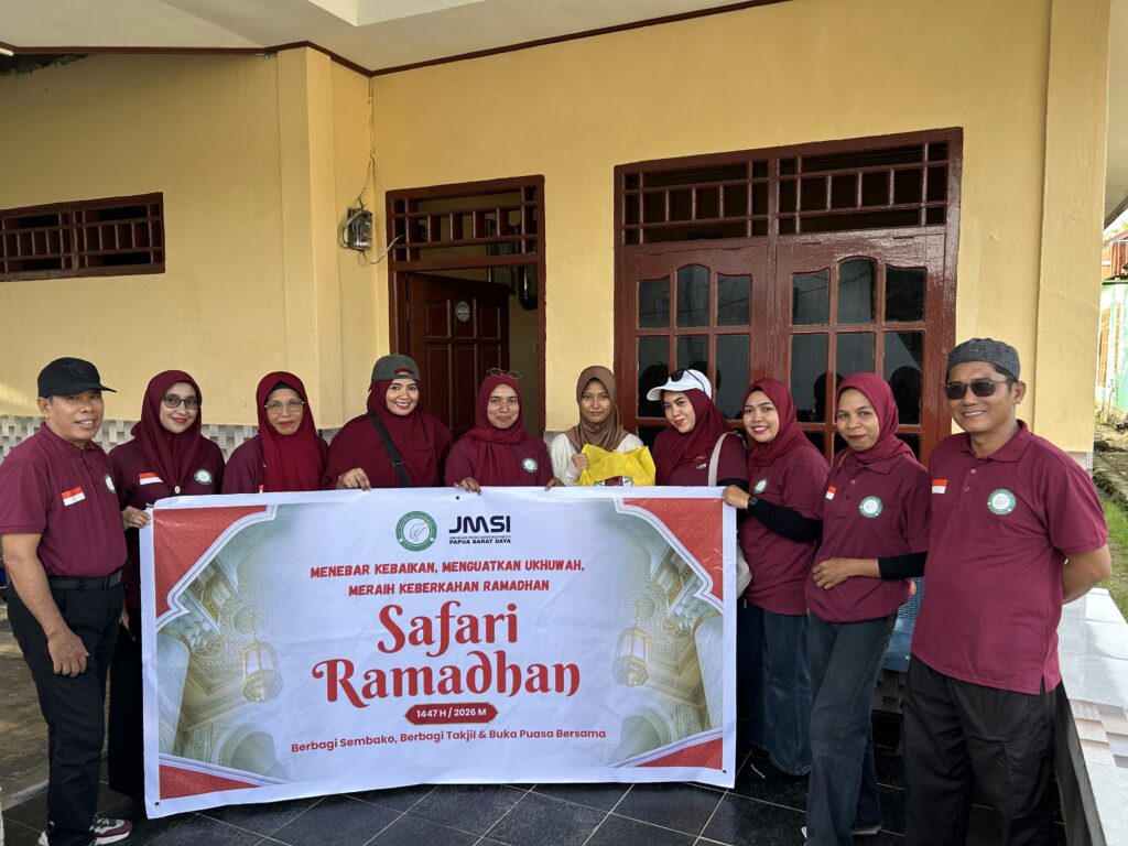 Sorong Today, Sorong – Dalam rangka menyemarakkan bulan suci Ramadhan 1447 Hijriah sekaligus mempererat ukhuwah islamiyah dan kepedulian sosial, Yayasan Rumah Sedekah (RUSH) Bersama Sorong Raya berkolaborasi dengan Jaringan Media Siber Indonesia Papua Barat Daya (JMSI PBD) menggelar kegiatan Safari Ramadhan 1447 H, Minggu (1/3/2026).