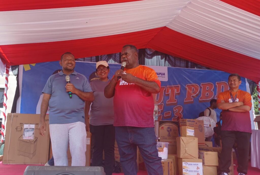 Kepala Bank Papua Cabang Sorong, Amal Wally turut menyerahkan bantuan dana sebesar Rp250 juta untuk mendukung rangkaian kegiatan HUT ke-3 Papua Barat Daya.