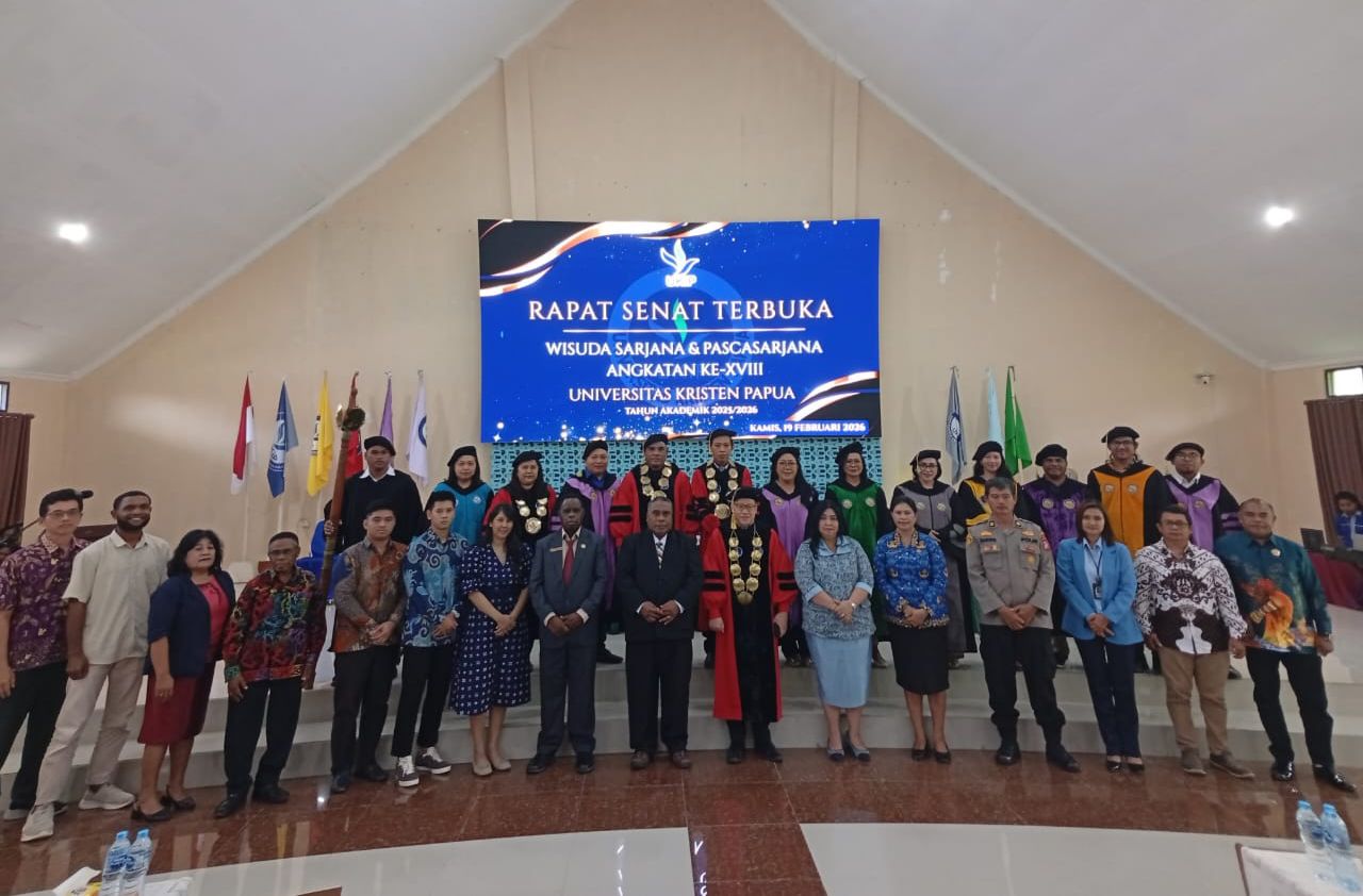 Sorong Today, Sorong – Universitas Kristen Papua (UKiP) menggelar Rapat Senat Terbuka Wisuda Sarjana dan Pascasarjana Angkatan ke-XVIII Tahun Akademik 2025/2026 bertempat di Gedung Getsemani UKiP, Kota Sorong, Papua Barat Daya, Kamis (19/2/2026).