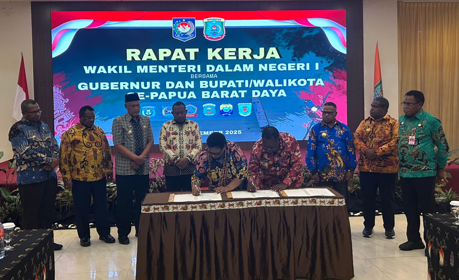 Pertemuan tersebut dihadiri langsung oleh Gubernur Papua Barat Daya Elisa Kambu, Wakil Gubernur Ahmad Nausrau, serta para bupati dan wakil bupati se-Papua Barat Daya.